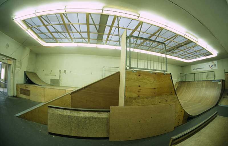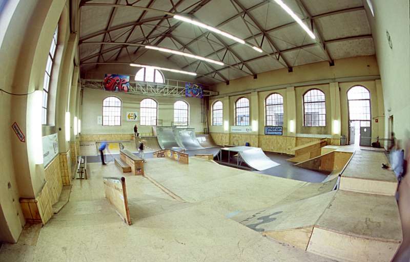 Das alte Zuhause der Basler Skatehalle, die Landihalle, ist abgerissen. Glücklicherweise hat die Skatehalle ein neues Domizil im Pumpwerk gefunden. Dabei musste so mancher Kompromiss eingegangen werden, da die zur Verfügung stehende Fläche nun nicht mehr 4000 qm beträgt, sondern nur noch 800 qm. Aber immerhin: Dies ist besser als nichts und die Basler haben den zur Verfügung stehenden Raum kreativ genutzt. Auch die Mini-Ramp und die Half-Pipe stehen wieder, was ein ganz besonders dickes Lob verdient. Der Platz nach oben ist zwar stark eingeschränkt, aber wenigstens sind die Rampen überhaupt noch da.