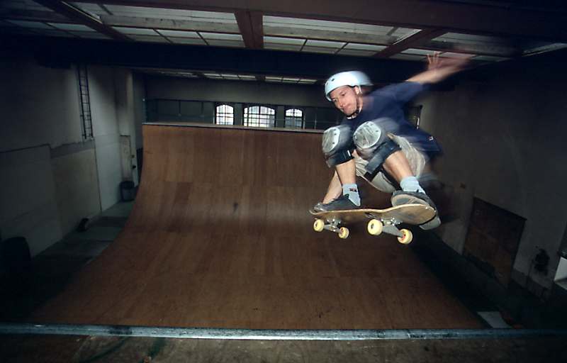 Die Basler Skatehalle hat durch den Umzug in die kleinere Halle stark Federn lassen müssen. Am stärksten vermisse ich den Pool, die Street-Skater werden es sicherlich bedauern, dass es "nur" noch eine Street-Fäche gibt. Auf dieser sind jedoch wieder alle wesentlichen Elemente zu finden: Curb-Cut, Quarters, Fun-Box, Slide-Stangen, Rails, Picknick-Table. Neu hinzugekommen ist eine Pyramide. Das schwerwiegendste Problem für die Street-Skater dürfte sein, dass alles etwas enger zugeht. Aber damit müssen sich auch die Rampen-Skater abfinden: Der Platz zur Decke ist zu knapp.