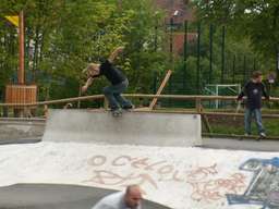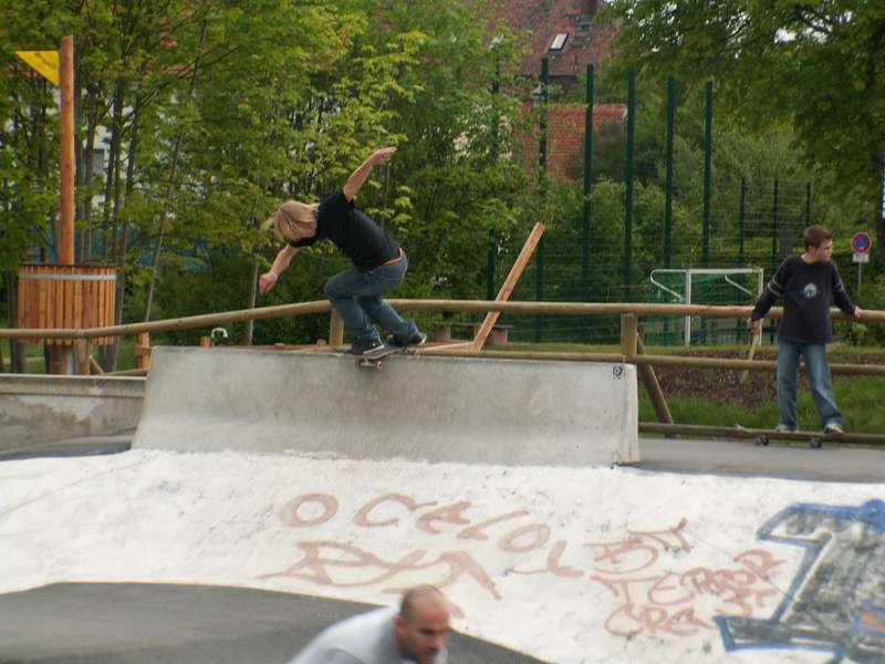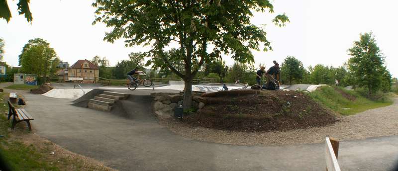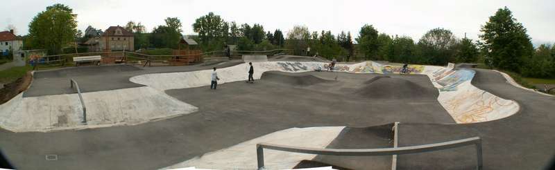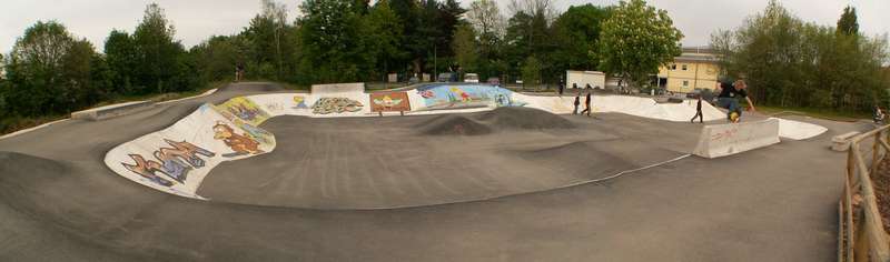Ja was soll man sagen fetter Skatepark, komplett aus Asphalt, vom Martin und seiner Blackriver-Ramps-Crew, inkl. Londongap, Autobahnabsperrung, Hips, Rails, Banks, etc., dazu kostenlos, gute Parkmöglichkeiten, der Park darf von jedem gefahren werden, Skater, Inliner, BMXer. Tja, und trotzdem, ich finde das Teil Shit, ganz ehrlich. rausgeschmissenes Geld, sorry Martin, das Teil macht Spaß, aber wenn dann nur ne Stunde, mit dicken Rollen rumcarven, ein paar Tricks an dem Autobahn-Curb üben, that's it. Es ist halt trotzdem Asphalt, und der auch noch ganz schön rauh, das geht, denke ich, noch feiner. OK, der Park ist in der Größe mit Asphalt viel billiger zu realisieren, aber dann hab' ich lieber nen viertel so großen Park aus Beton, sprich, für das gleiche Geld nen Beton-Kidney-Bowl mit geilem Coping, und fertig. Lohnt meiner Meinung nach nur, wenn man in der Nähe ist.