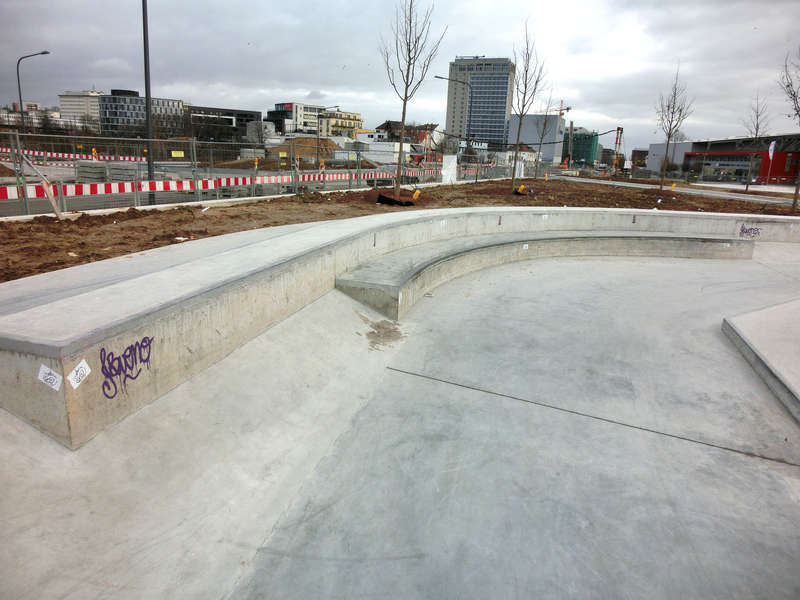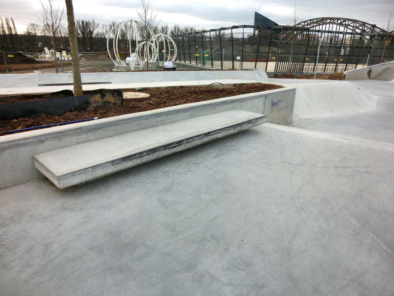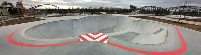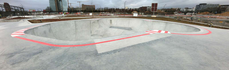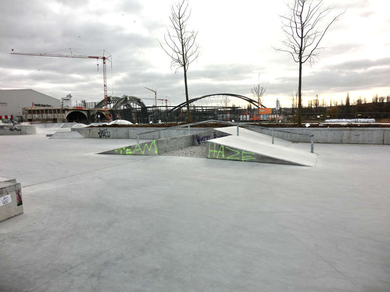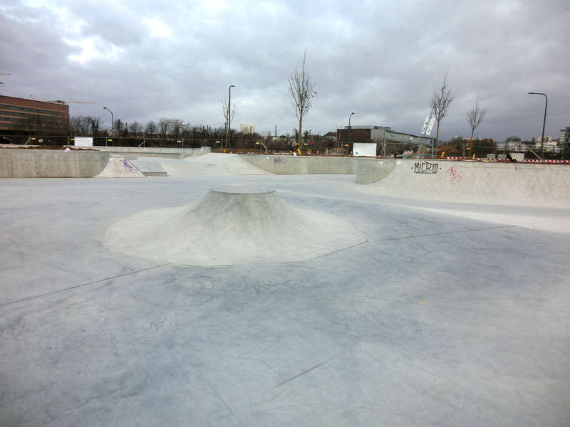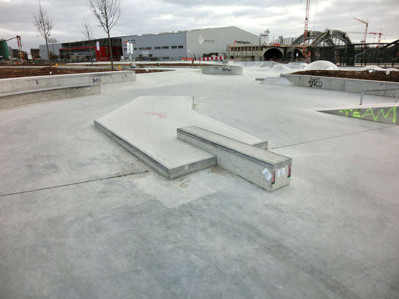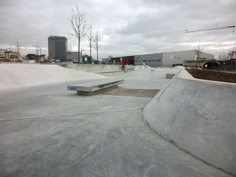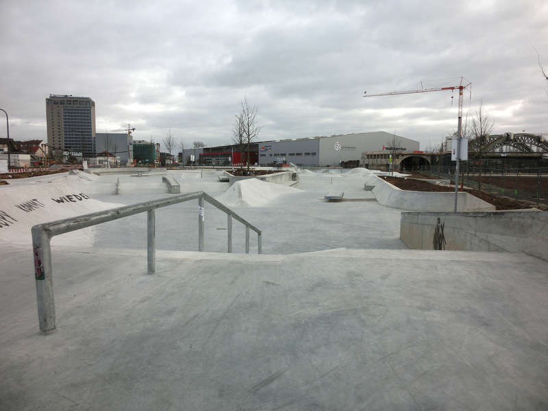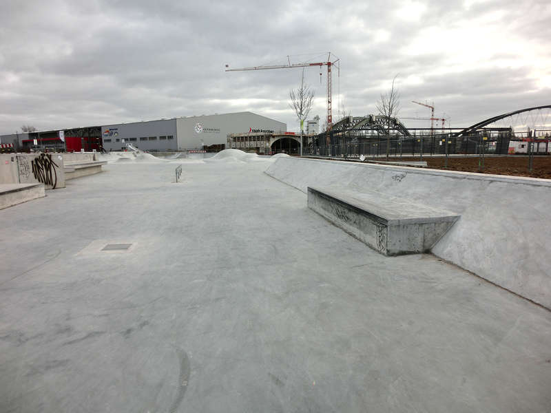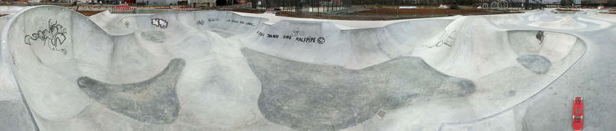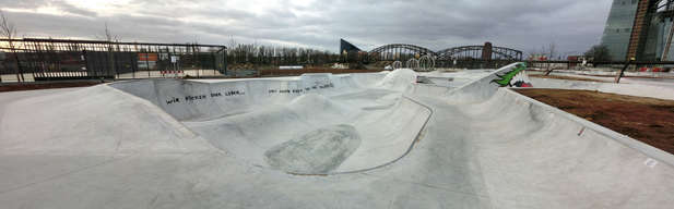Der Park hat so ziemlich alles, was man in Beton gießen kann: einen Flowbowl, eine Cloverleaf-Bowl, Handrails, Ledges, Banks, Kerbs.