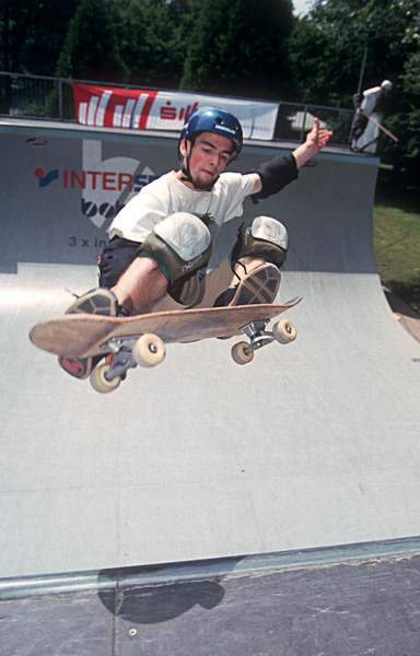 Bob Joosten aus Holland hatte wie Anders seine Anmeldung zurückgezogen, weil ermit dem rutschigen Metallbelag nicht zurechtkam. Nachdem Anders sich wieder angemeldet hatte, machte Bob es ihm nach und war wieder Contest-Teilnehmer, was letztlich mit dem dritten Platz belohnt wurde. Genau wie Sascha Müller fuhr er super-smooth und stylisch. Er zeigte hohe BS-Airs, Mute-Airs, Gay-Twist, Half-Cab-Noseslides. FS-Tailslides, BS-Desaster, Fakie-5-O-To-Fakie und Air-To-Fakie.
