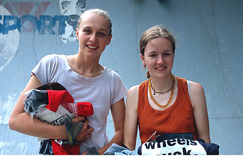 Zum diesjährigen HotLawa-Contest waren deutlich weniger Eight-Wheeler angereist als zum letzten Contest am See. Dennoch, die angereisten Eightwheelers fuhren am Samstag ihre Qualifikation. Judith Brunner aus Bern und Corinna Grambach aus Freiburg bildeten die Frauengruppe. Corinna Grambach skatete gelassen die Rampe und zeigte Airs, Soul-Grind, Handplant und Fakie 360°. Sie belegte den zweiten Platz. In der Gesamtwertung den 4. Platz. Judith Brunner belegte den ersten Platz, den sie sich mit Over-Soul-Grinds, Makios, Soul-Grinds, Fakie-Bio-540° und schöne geländerhohe Airs sicherte. In der Gesamtwertung belegte Sie den 2. Platz.