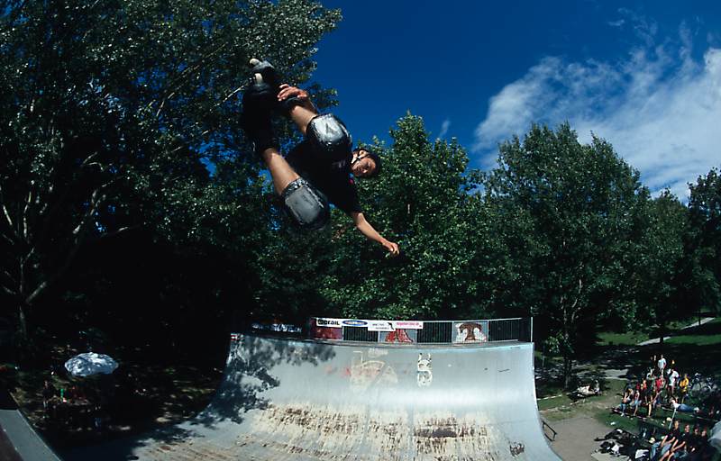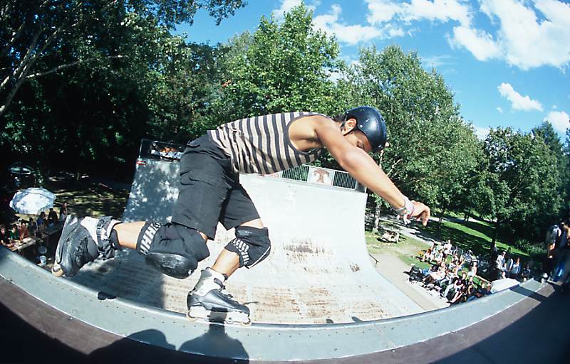 Es gab am Sonntag auch einen Best-Trick-Contest, der von den Inlinern und Skateboardern gemeinsam gefahren wurde. Vieles wurde versucht und vieles wurde fast gestanden, aber der Best-Trick ging an Christian Jugg mit einem perfekten Blunt-Mute-Grab-to-Fakie.