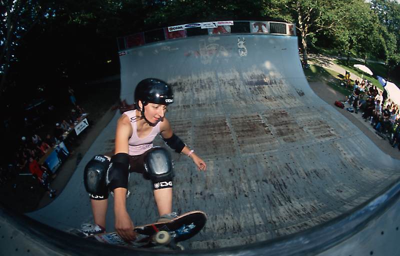 Franziska Stolz verkratzte unseren Coping mit Backside-50/50s und machte Fakie-Ollies, Ait-to-Fakie und einen cleanen Indy-Air.