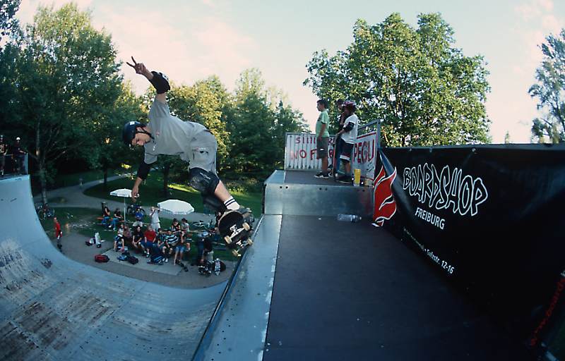 Andreas Krall flog Airs ohne Ende. Backside/Mute, Frontside-Stalefish, Backside-Ollie-Tailgrab auf der Extension, Gay-Twists, Lien-Method.