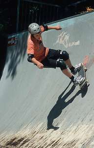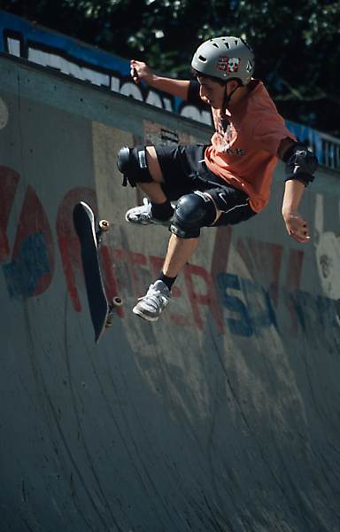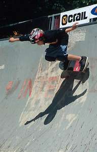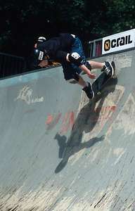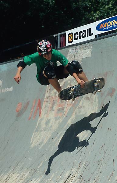 Christian Schipp war der Pechvogel des B-Gruppen-Contests, denn er verletzte sich am Samstag so, dass er am Sonntag nicht skaten konnte, aber im Practice machte er Drop-Ins, Slides und kleine Air-to-Fakie.