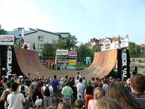 Auf dem extra aufgebauten Sportparkgelände herrschte drei Tage lang an der Halfpipe, der Minirampe