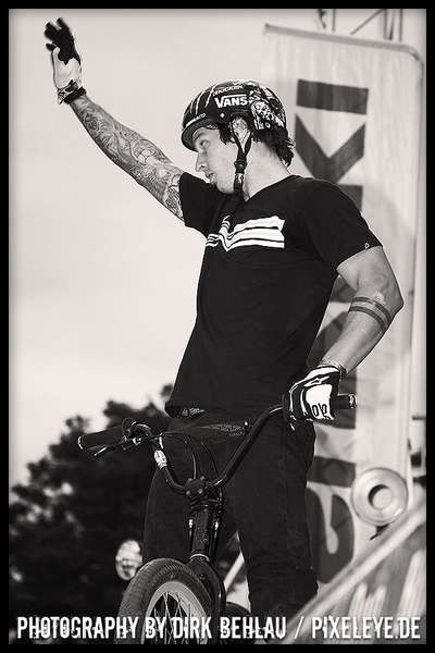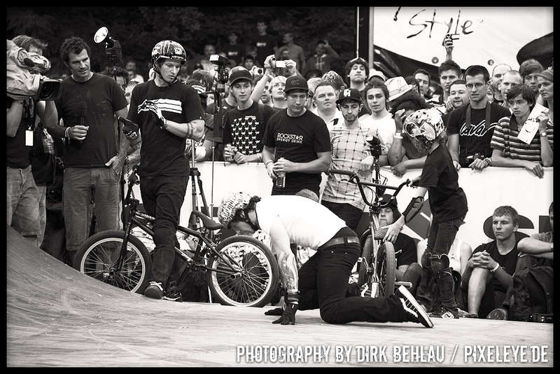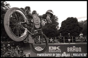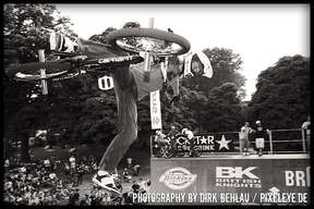 Über sechzig Pro-Fahrer rockten bei der Qualifikation die gigantischen Jumps des Dirt Parcours dermaßen überzeugend, dass diesmal mit 18 Fahrern bei den Finals gestartet wurde. Die Verlagerung der Dirtline unter die Zoobrücke brachte dieses Jahr Fahrern und Zuschauern noch mehr Aktion und blendende Einblicke in die wahnsinnigen Abflüge. Sieger Ryan Guettler (AUS) erwischte einen wirklich guten Tag: 1080, Frontflip on the Step up und one hand one foot 720 sind allesamt Tricks der Kategorie Extraklasse! Der zweit platzierte Corey Bohan punktete mit unglaublichen Turn Down Flips und den dritten Platz belegte Dirt-Virtuose TJ Ellis (USA). Die TV-Interviews mit den Fahrern führte kein geringerer als BMX-Legende Mat Hoffman (USA)!