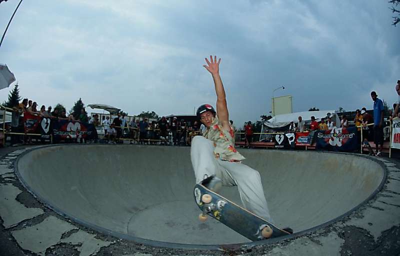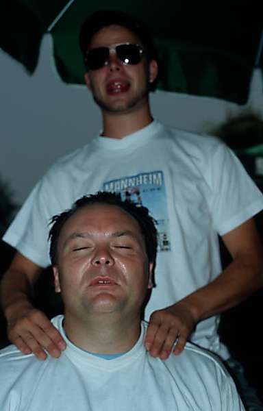 Das Mannheim Massacre fand am 7. und 8. August 2004 statt und hat sich in seinem nunmehr vierten Jahr zu einem festen Bestandteil der südwestdeutschen Skateboardlandschaft entwickelt. Den Organisatoren gebührt hierfür großer Respekt! Die Augusthitze gehört ebenso schon fest dazu, konnte sich aber nicht den ganzen Samstag über halten. Die Youngsters konnten ihre Runs noch voll durchziehen, aber in der Jedi Class ertränkte der aufkommende Regen die beiden letzten Runs, so dass Axel Torschmied und Wolfgang Toth leider nicht mehr gewertet werden konnten. Dafür findet sich auf der Website www.poolrider.de des Ersteren ein sehr schöner Bericht über das Ergeignis. Der Regen führte jedoch dazu, dass die Band Rain (honi soit, qui mal y pense!) zu ihren Auftritt das Publikum zu sich ins Zelt holte, das eigentlich für die Band alleine vorbehalten war. Dadurch geriet ihre Performance zu einem sehr dichten (und lauten) Ereignis, was aber die Stimmung eher anhob.